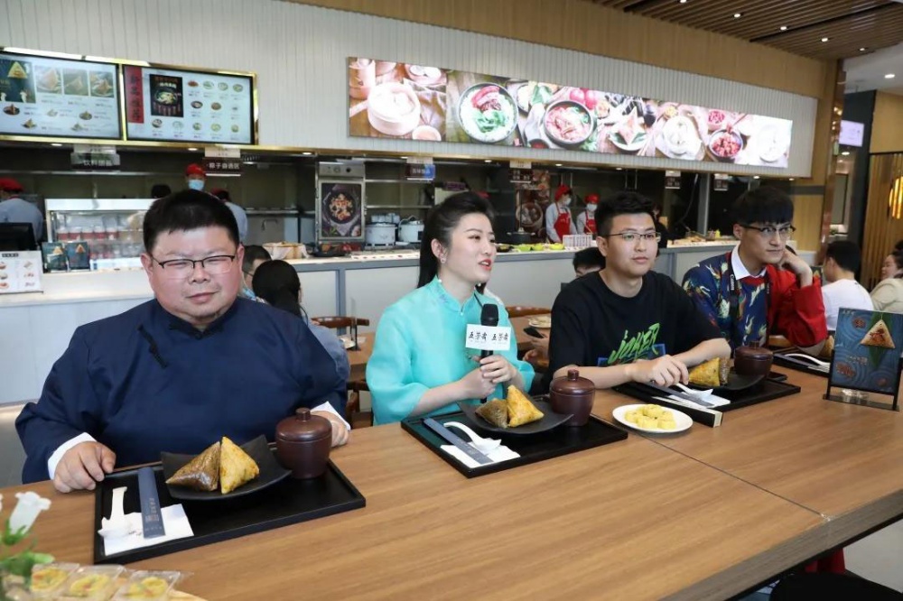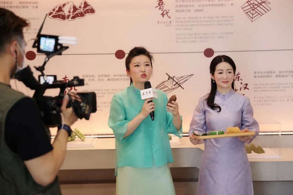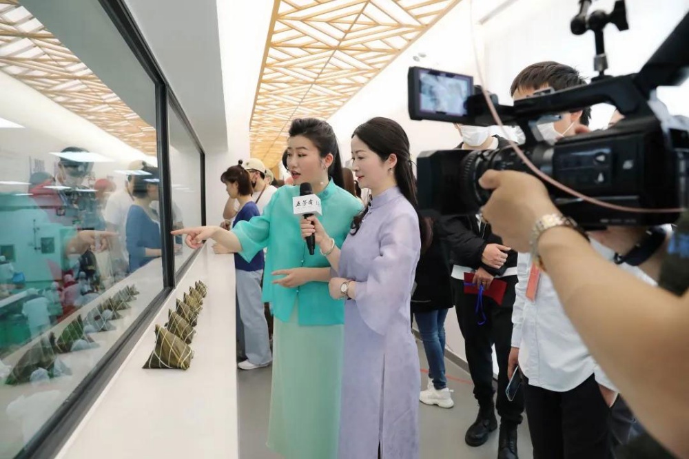 浙江五芳齋實業(yè)股份有限公司副總經(jīng)理徐煒帶領主持人和嘉賓來到粽藝長廊,參觀粽子從淘米、切肉到裹粽等生產(chǎn)流程,從糯源、糯藝、糯心三個維度感受五芳齋的拳拳匠心,深入了解中國源遠流長的粽子文化。