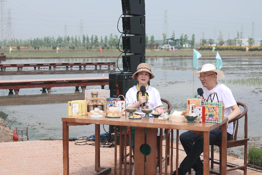 節(jié)令文化互動環(huán)節(jié),嘉興文化名人倪嘉能和浙江五芳齋實業(yè)股份有限公司副總經(jīng)理徐煒聊起了芒種的文化習俗。通過對芒種節(jié)氣豐富意蘊的探尋,現(xiàn)場嘉賓們更深入地體驗和感受到節(jié)氣文化的內涵和傳統(tǒng)文化之美。暢談之余,嘉賓們一起品嘗了五芳齋精心準備的綠豆糕、粽子酥、糯心酥、杯裝粥及吐司產品。