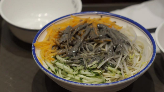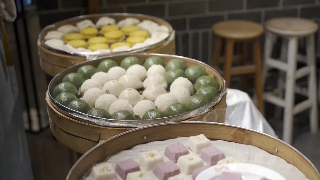 飲食文化也依時令隱含其中。民諺曰:“吃過夏至面,一天短一線。”夏至吃面是很多地區(qū)的習俗。因夏至新麥已經登場,所以夏至吃面也有嘗新的意思。除此之外,夏至吃糕團也寓意著節(jié)節(jié)高升以及平安健康。美食鑒賞家樊老師帶領徐老師品嘗了南門頭的特色美食——夏至面以及糕團。