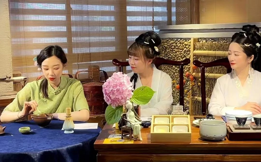 隨后,五芳齋小伙伴還嘗試了宋代“點茶”,先將茶葉磨成粉末,再投入碗里,注入水,注水時猶如蜻蜓點水,點茶之名由此而來。