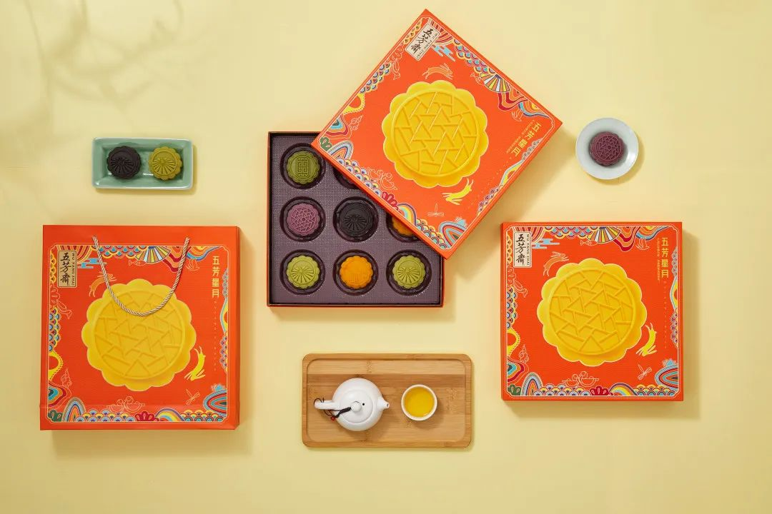 “五芳星月”四層流心糯月餅,表皮松軟細膩,口感綿密,一口爆漿自然流出,多重口感,層層遞進。