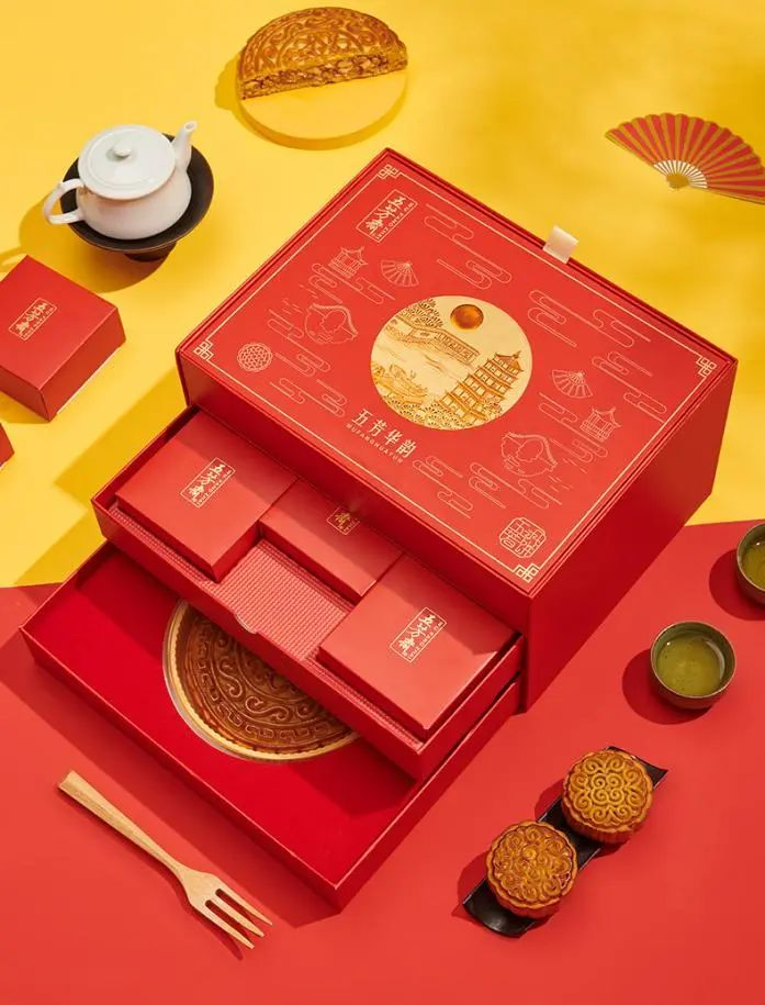 五芳齋除了在口味上精益求精,在包裝上也巧用心思。隨著國(guó)風(fēng)國(guó)潮的回歸,我們更深刻地體悟到中華民族瑰寶璀璨和華麗?!拔宸既A韻”簡(jiǎn)約大氣的中國(guó)紅加以燙金的圖騰將中秋節(jié)日氛圍感拉滿,十一款不同口味的廣式月餅匯集一盒,每一塊都棕紅酥潤(rùn)且入口細(xì)膩。