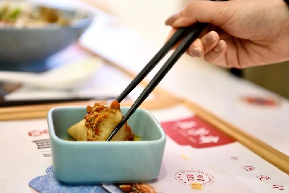 作為活動(dòng)當(dāng)天的另一項(xiàng)議程,正值五芳齋稻花香大米豐收上市季,活動(dòng)中向到場的各位嘉賓展示介紹五芳齋稻花香大米生長環(huán)境以及如何鑒別挑選好大米,現(xiàn)場更是邀請到五芳齋粉絲參與其中,現(xiàn)場搭配五芳齋招牌梅菜肉和五芳齋中華節(jié)令美食體驗(yàn)店特有菜品咸蛋黃獅子頭鹵肉來品嘗,梅菜肉醇香不膩、咸蛋黃獅子頭鹵肉唇齒留香,配上潔白油亮的新米米飯,更能體會到其清香黏糯的口感,讓到場嘉賓可以從色、香、味等全方面體驗(yàn)稻花香大米的馥郁美味。