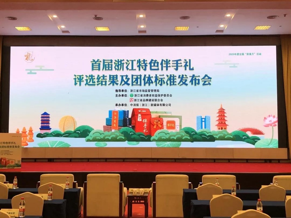 9月23日,由浙江省消費(fèi)者權(quán)益保護(hù)委員會、浙江省品牌建設(shè)聯(lián)合會聯(lián)合舉辦的首屆浙江特色伴手禮評選結(jié)果及團(tuán)體標(biāo)準(zhǔn)發(fā)布會在杭州之江飯店隆重舉行。