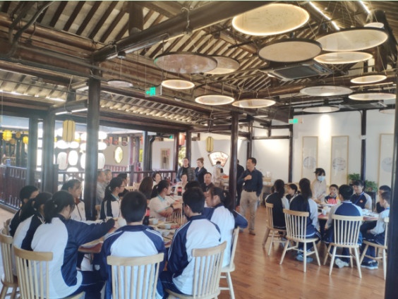 10月12日中午,秀州中學(xué)、高照中學(xué)的20位同學(xué)在老師的帶領(lǐng)下,來到五芳齋嘉湖細點月河店。參加五芳齋幸福傳遞結(jié)對助學(xué)三周年紀念活動。