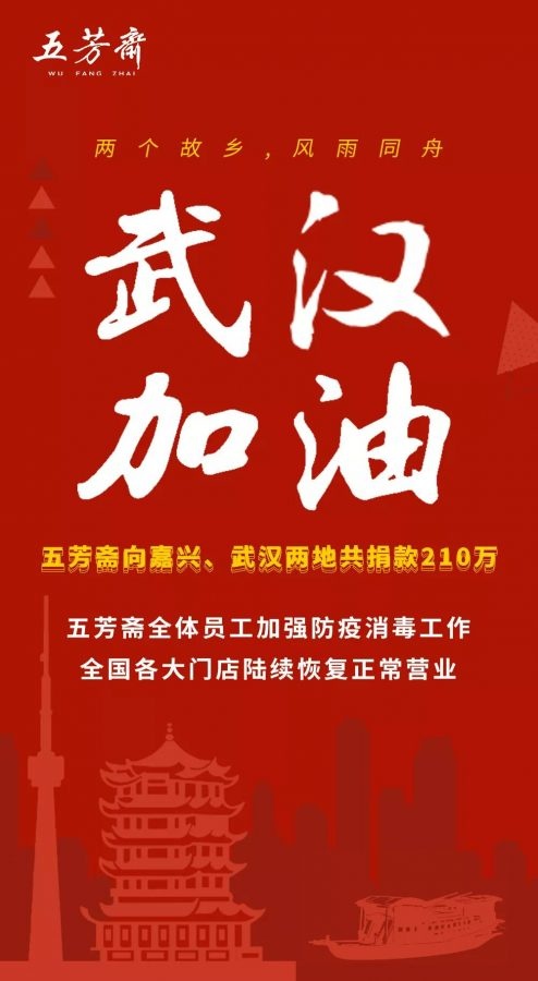 攜手同心,同舟共濟(jì)!齊心協(xié)力,共克時(shí)艱!五芳齋,一直都在你身邊!